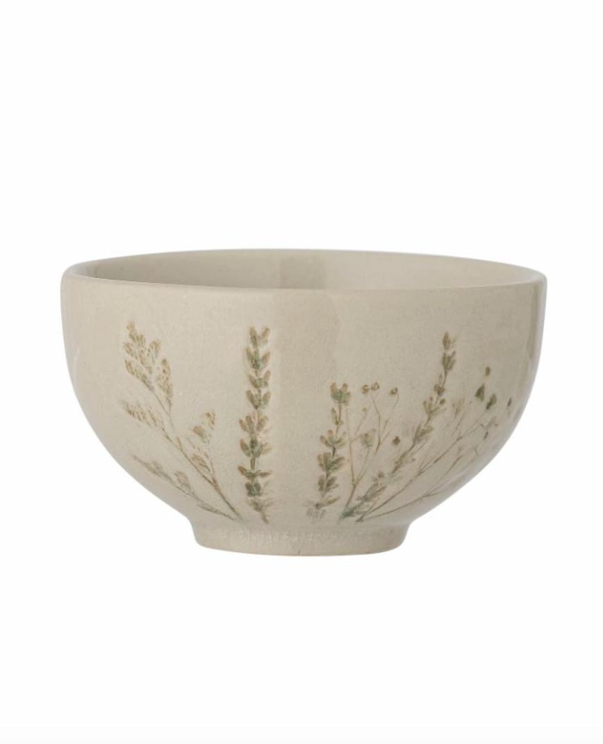 Le Bol Bea de Bloomingville est un beau bol en grès avec un délicat motif floral peint à la main sur son émail craquelé. Les détails artisanaux garantissent que chaque bol est unique, tandis que l'effet craquelé peut s'intensifier avec l'utilisation. Le bol peut contenir 300 ml et passe au lave-vaisselle.