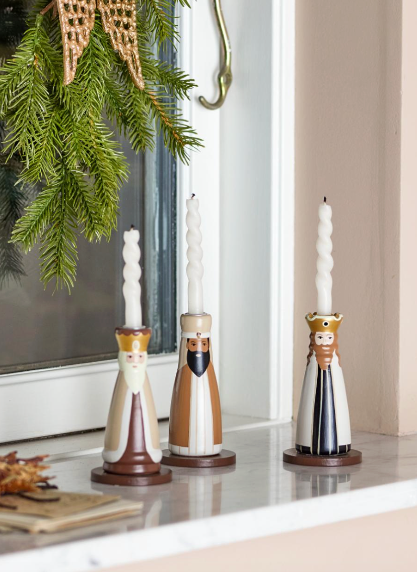 Le Bougeoir Bertiel de Bloomingville est un ensemble de trois porte-bougies décoratifs en bois de hêtre certifié FSC. Les charmantes figurines apportent une atmosphère cosy et traditionnelle dans votre maison. Parfait pour la table de Noël ou comme partie de votre décoration de Noël, où ils ajoutent une touche unique et festive.