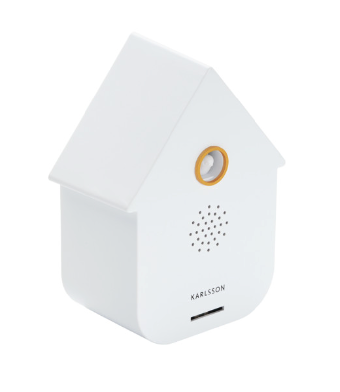 Un détail étonnamment ludique pour tout intérieur : la boîte à sons Modern Cuckoo de Karlsson émet un joyeux sifflement d'oiseau dès qu'un mouvement est détecté. Son design moderne en forme de maison s'inspire du célèbre coucou. Le son dure 25 secondes et le volume se règle facilement grâce à un bouton situé à l'arrière. Idéale pour l'entrée, la salle de bain ou toute pièce qui a besoin d'une touche d'humour et de personnalité.