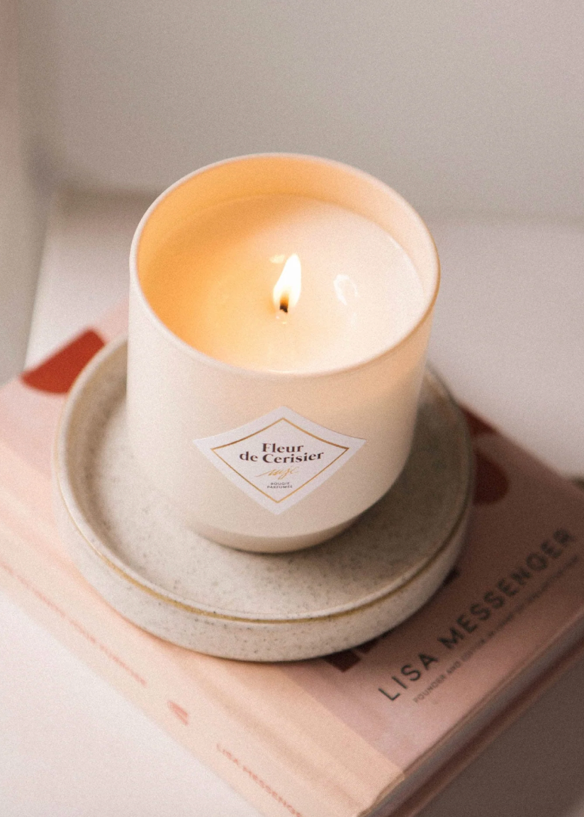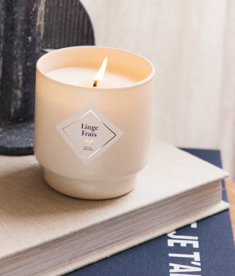 - Cire à base végétale et mèche en fibres naturelles de coton