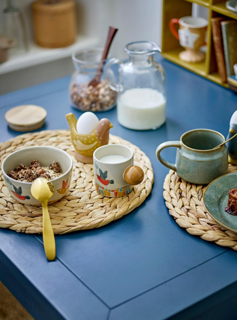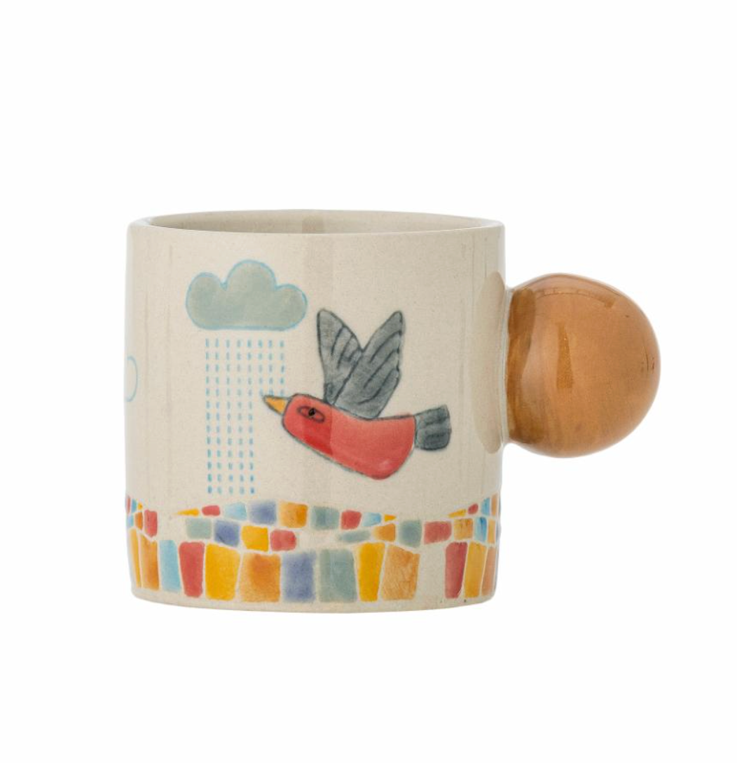 La Tasse Colorine de Bloomingville MINI est en grès et présente un motif apaisant d’un oiseau volant au-dessus d’un paysage paisible. Chaque tasse est unique en raison des variations naturelles de l'émail.