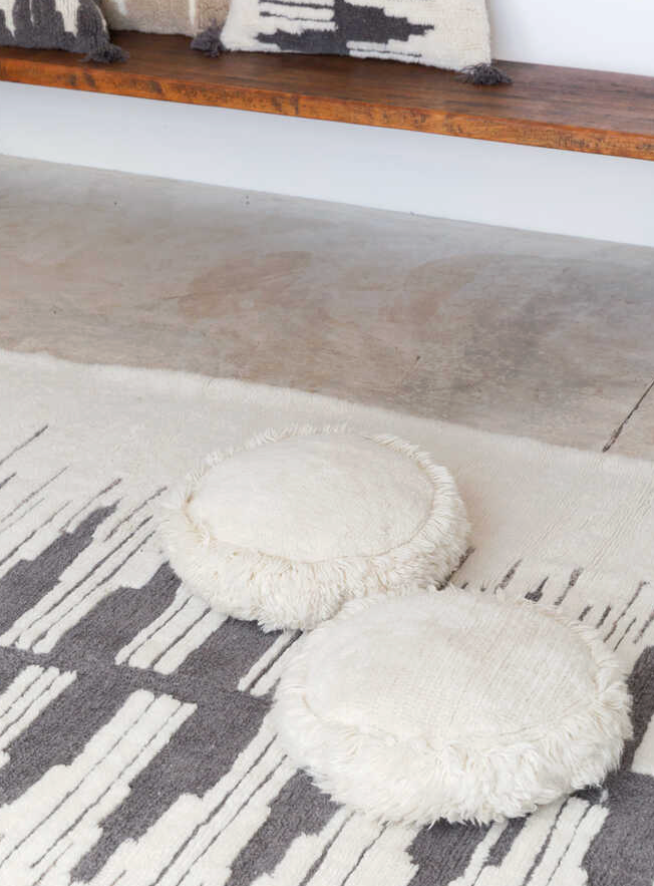 Quand un tapis devient un confortable coussin de sol. Relaxez-vous avec une surface douce sur laquelle vous reposer, en véritable mode nomade. Ce coussin de sol rond est tufté comme un tapis, et il est polyvalent. Utilisez-le sur le tapis, le lit ou le canapé, pour compléter votre décoration avec une touche bohème et nomade.