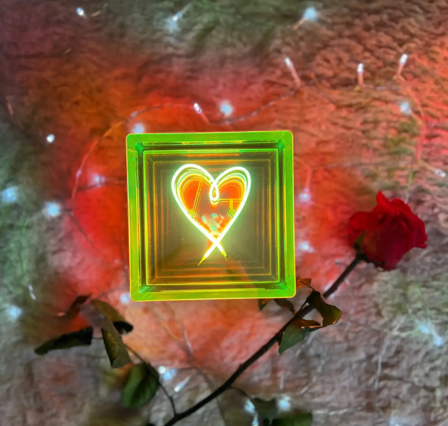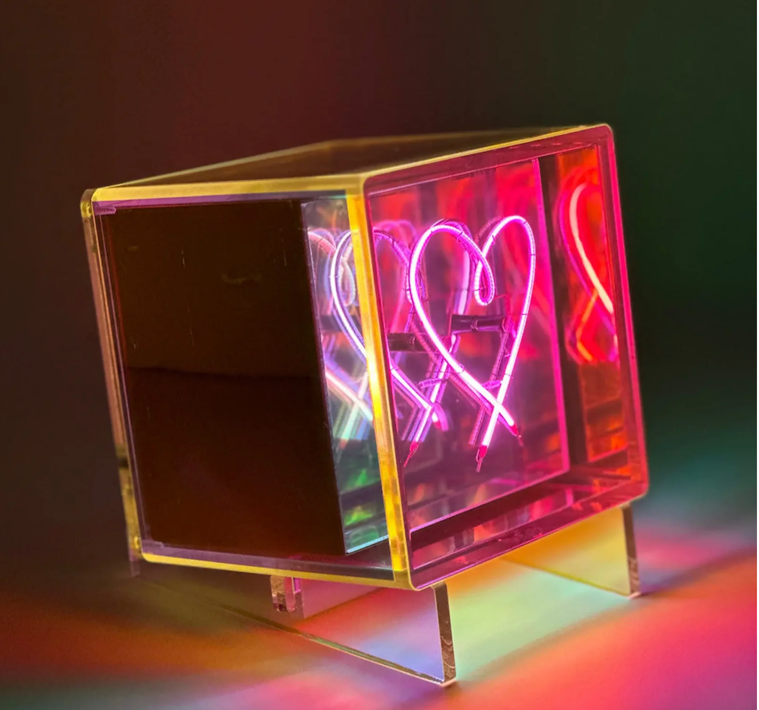 La MITBOX joue avec la lumière et la profondeur grâce à son effet miroir et son acrylique irisé. Ce cube LED sans fil diffuse une lueur unique. Son message lumineux "HEART" symbolise l’amour et l’émotion, apportant une touche élégante à votre intérieur. Fourni avec son support discret et élégant pour une mise en valeur immédiate.