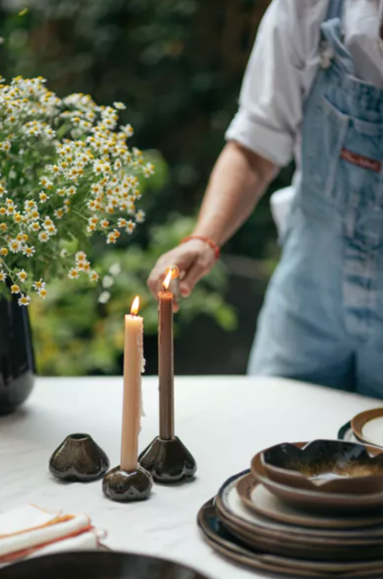 CYCLE - set/3 bougeoirs - grès - DIA 7/8/9,5 x H 4/6/7 cm - mix de couleurs