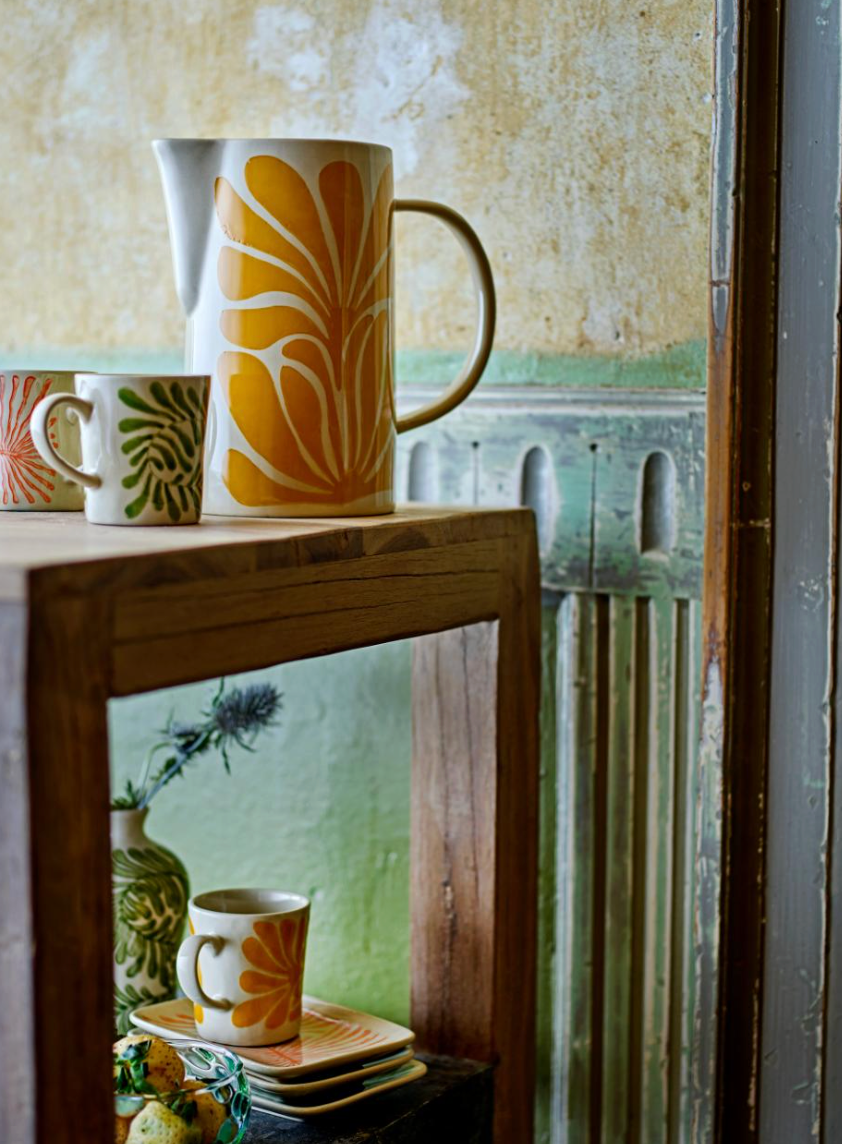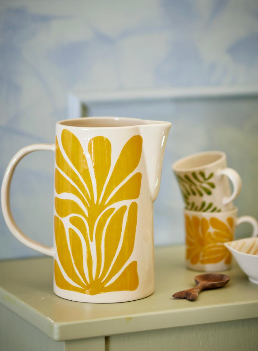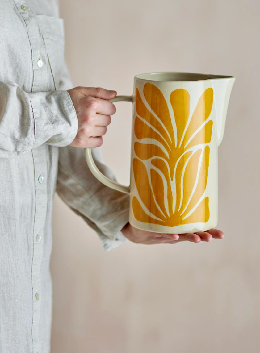 Le Pichet Fauni de Creative Collection est fabriqué en grès et décoré d'un motif de feuilles peint à la main dans des tons jaunes chauds. La forme haute et les coups de pinceau distincts donnent au Pichet une expression vibrante et artistique. De petites variations dans le motif et la couleur rendent chaque Pichet unique.