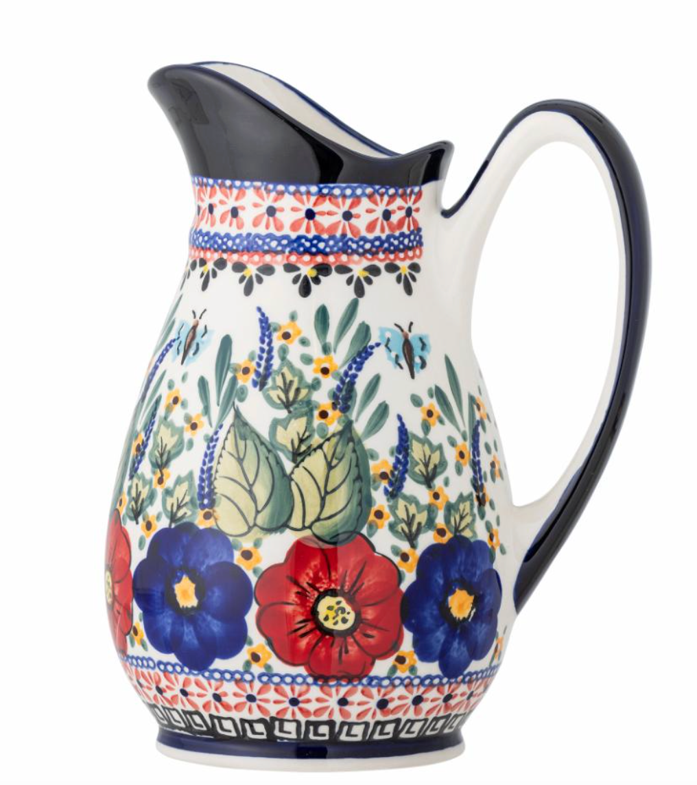 Le Pichet Florist de Creative Collection est en grès et magnifiquement décorée d'un motif floral coloré et vibrant en bleu, rouge, jaune et vert, avec une couleur noire complémentaire sur la poignée, le dessus et le dessous de la cruche. La cruche confortable et décorative apporte de la joie à table et est un ajout délicieux à tout décor. Utilisez la cruche comme vase pour un look décontracté. Chaque cruche sera unique en raison de la nature de l'émail et de la technique artisanale, et de petites variations peuvent survenir.