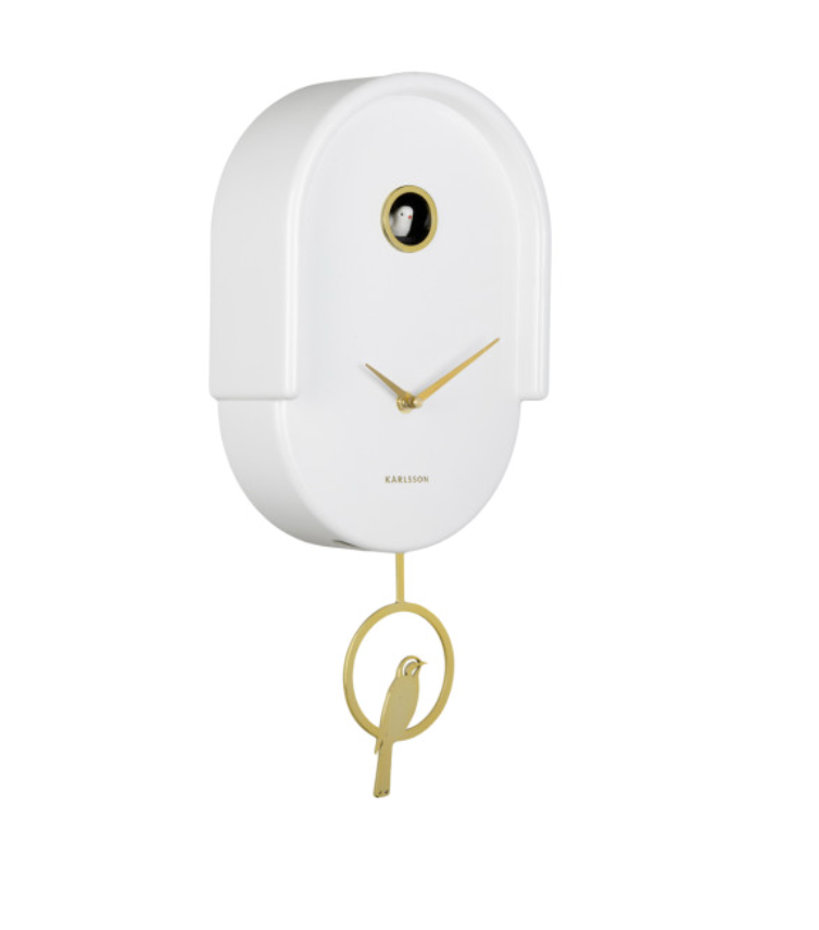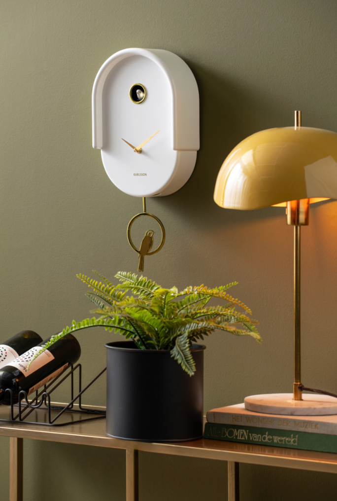 Un design de caractère. Imaginée par Callum MacSorley, l'horloge murale Tweet de Karlsson respire le luxe grâce à sa finition brillante et ses détails raffinés. Dotée d'un pendule et d'un élégant oiseau qui s'anime à heures fixes, elle arbore des formes arrondies et des éléments dorés qui lui confèrent une allure à la fois ludique et élégante. Un objet remarquable qui séduira à coup sûr les amateurs de design.