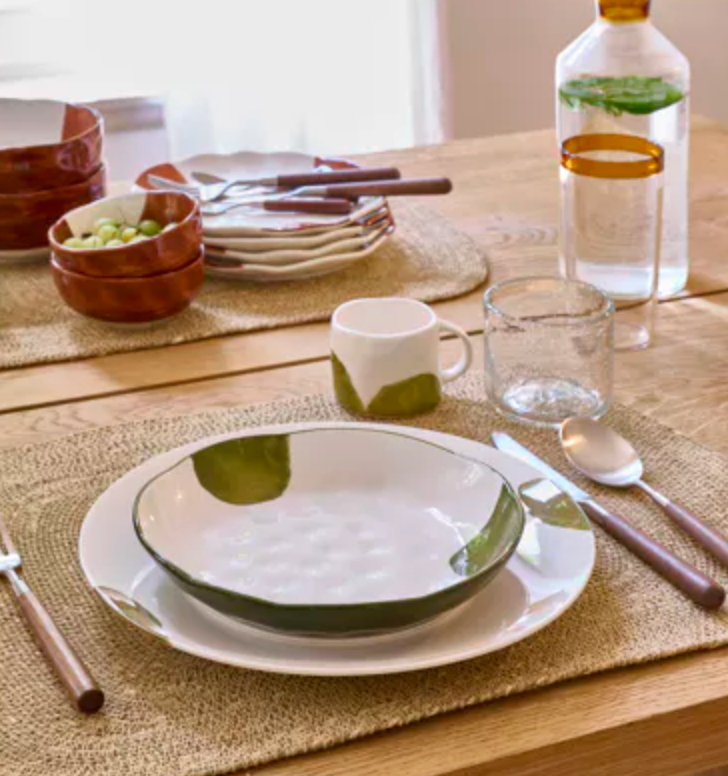 Faites connaissance avec Labo, une collection de vaisselle ludique, en porcelaine, inspirée par l’esthétique et l’ambiance d’un laboratoire moderne. Son aspect peint à la main et ses motifs en forme de capsule dans des tons verts terreux est une expérimentation créative qui semblent donner vie à chaque pièce de ce service de table.