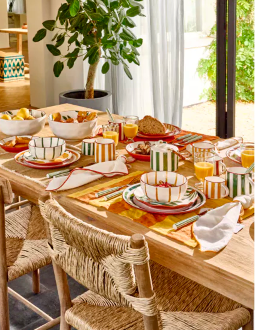 Inspirée de cette magnifique île des Cyclades d’où elle tient son nom, la collection Mykonos est une véritable ode à l’été et à la convivialité. Cette collection de porcelaine comprend des assiettes, des bols, des tasses, une carafe, une théière et des plats (pour le four) aux motifs joyeux. Articulée autour de trois couleurs : vert, jaune et rouille, la collection de vaisselle Mykonos vous permettra de créer toutes sortes de combinaisons vitaminées. . . De quoi apporter du soleil dans vos assiettes.
