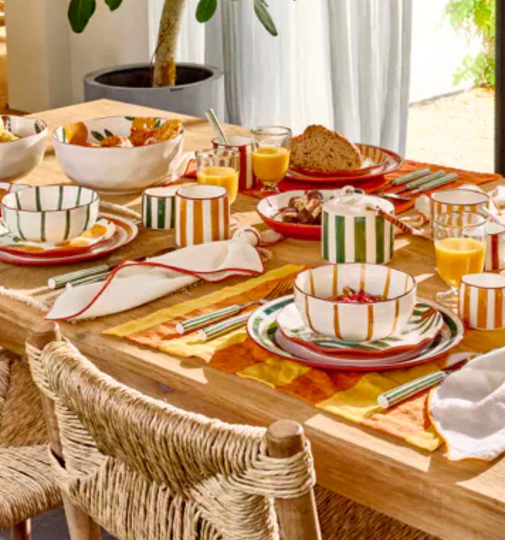 Inspirée de cette magnifique île des Cyclades d’où elle tient son nom, la collection Mykonos est une véritable ode à l’été et à la convivialité. Cette collection de porcelaine comprend des assiettes, des bols, des tasses, une carafe, une théière et des plats (pour le four) aux motifs joyeux. Articulée autour de trois couleurs : vert, jaune et rouille, la collection de vaisselle Mykonos vous permettra de créer toutes sortes de combinaisons vitaminées. . . De quoi apporter du soleil dans vos assiettes.