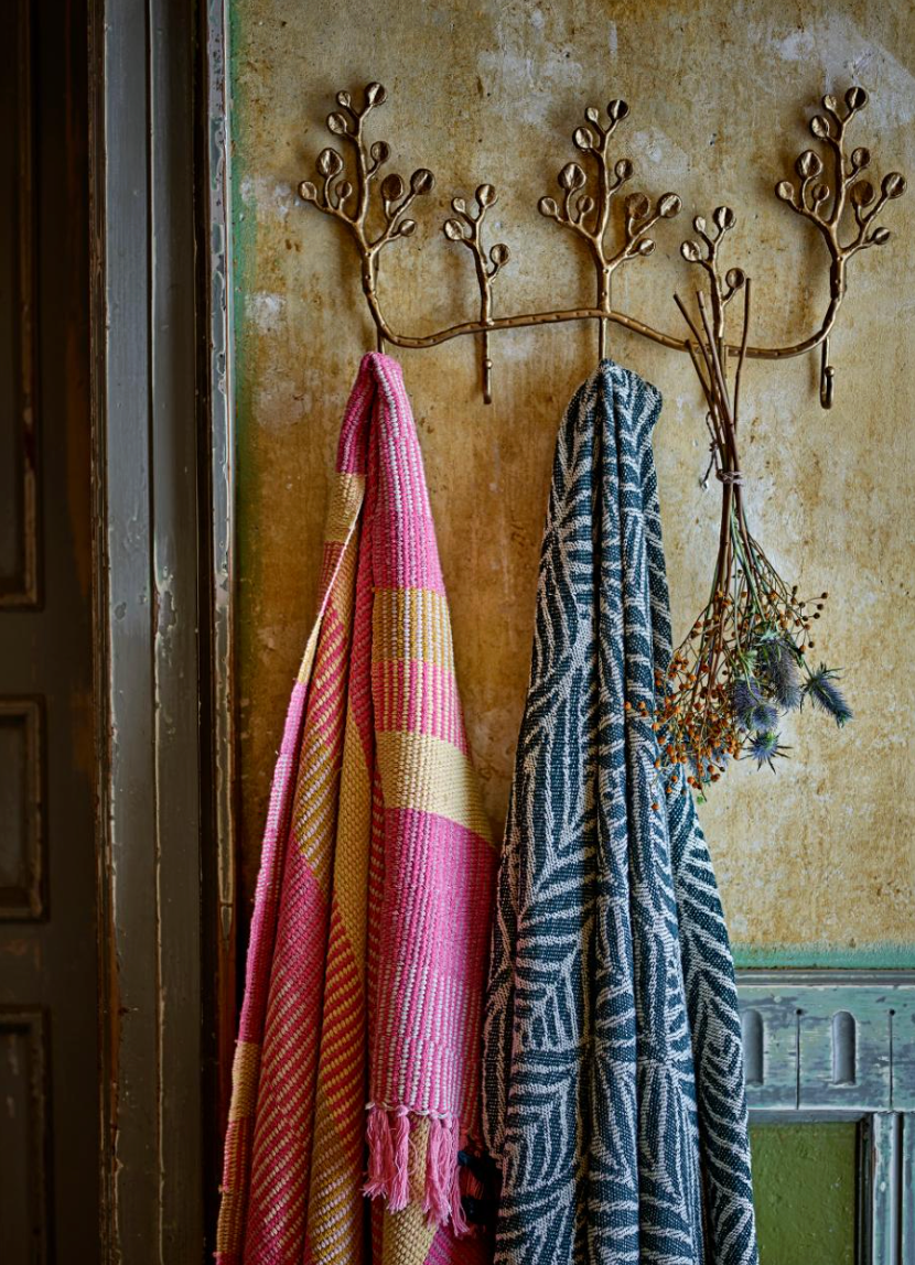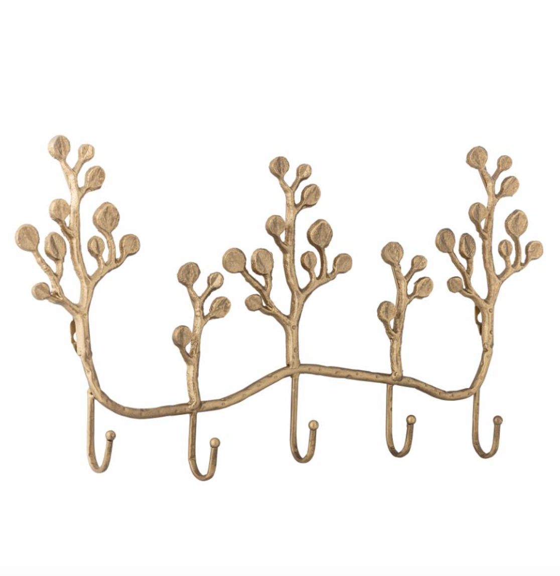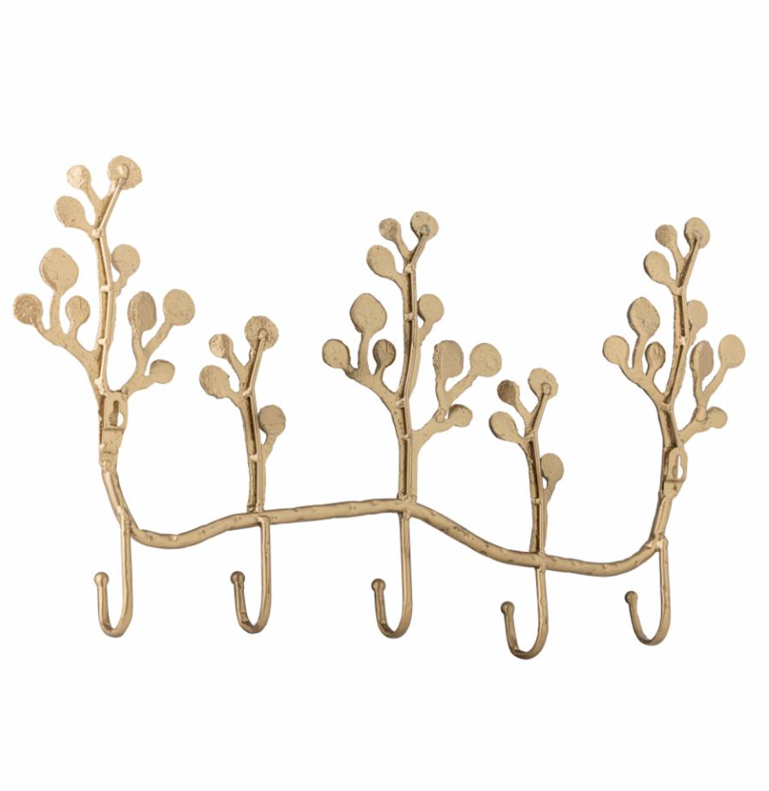 Le Porte-manteaux Padova de Creative Collection est fabriqué en fer avec une finition en laiton et en forme de branches avec cinq crochets. La silhouette incurvée ajoute un aspect sculptural au mur et permet de suspendre facilement des vêtements, des sacs ou des bijoux.