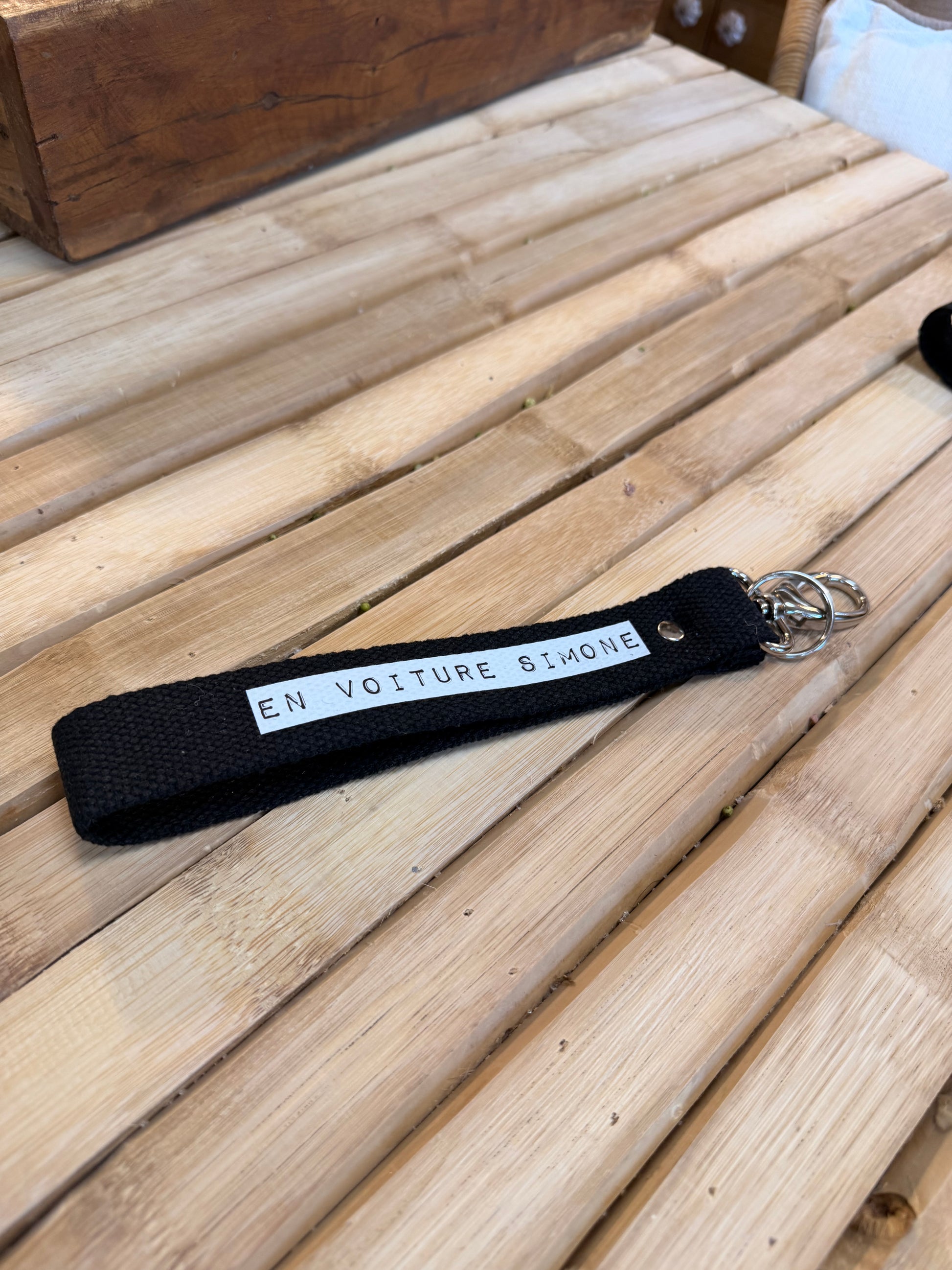 Sangle noir / dymo blanc - En voiture simone