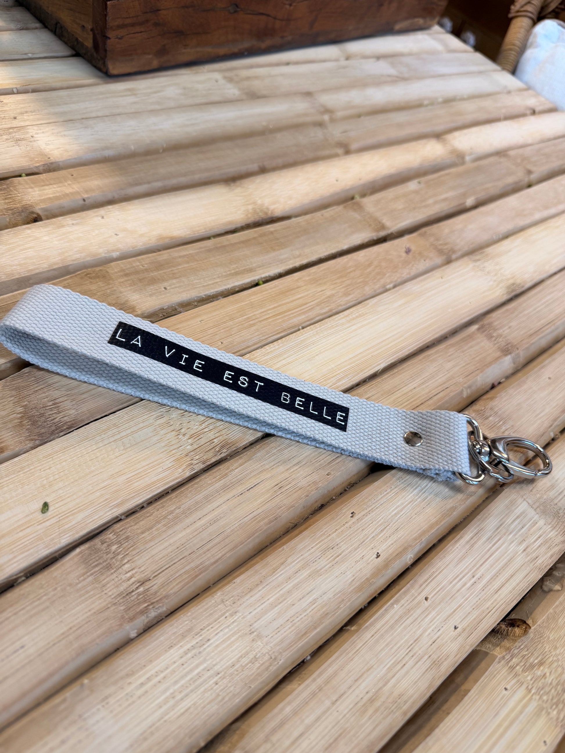 Sangle sable / dymo noir/ La vie est belle