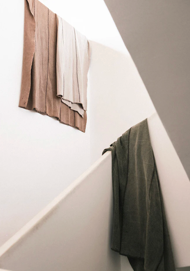 Les taches, marques et imperfections sont normales et font partie de ce qui rend chaque design différent et unique au sein de nos collections. Avec une finition douce et vivante, des coutures apparentes et des détails brodés à la main en fil de Tencel résistant — y compris un point “coffee bean” et la signature “L” — ce tapis célèbre le design conscient et le véritable artisanat.
